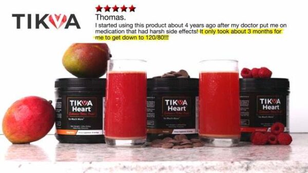 The first time I started Tikva I was in my sixties and my blood pressure went down to normal very fast in less than one month. Because the only flavor at the time was only chocloate and I didn't like the flavor after a few months I quit taking it. Then my blood pressure went up again in my late eighties. My doctor put me on blood pressure meds. I did not like the way the meds made me tired and kinda dizzy. Then I found out that Tikva had some new flavors. I tried the new flavors and found